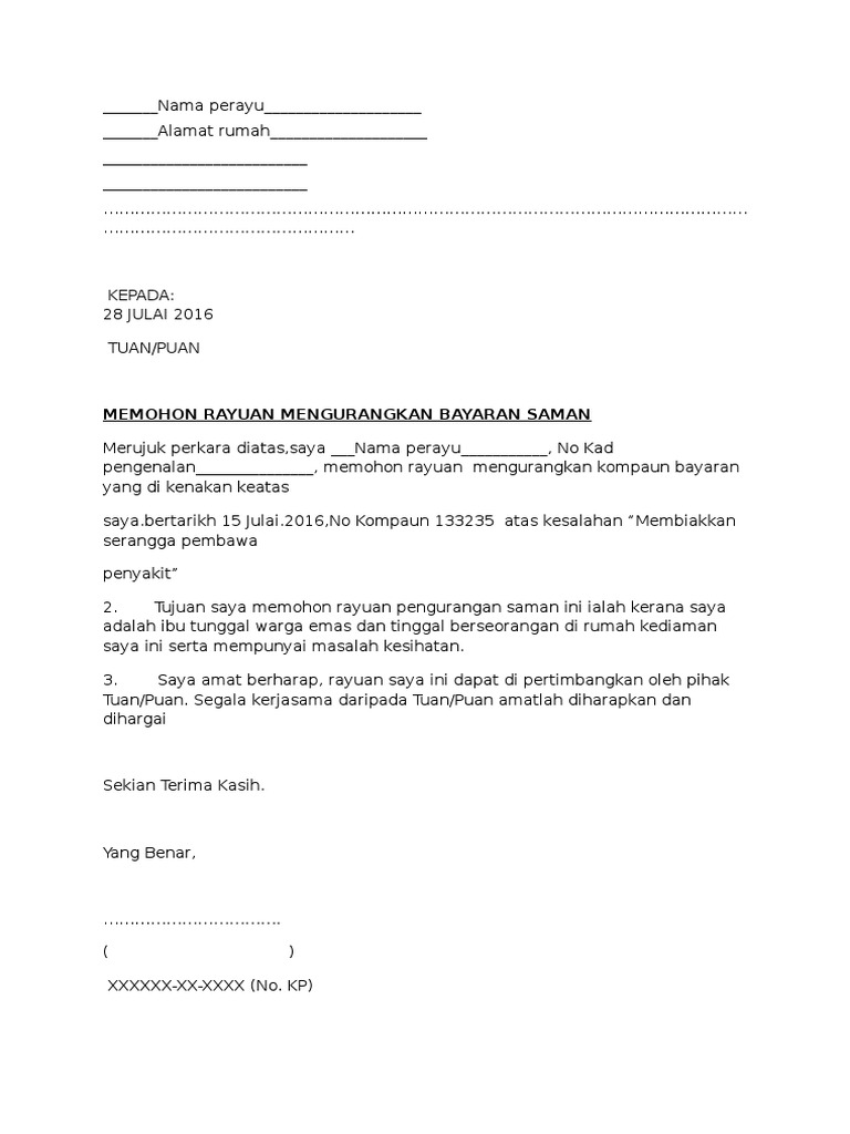 Templat Surat Rayuan Kurang Kompaun Aedes Pdf