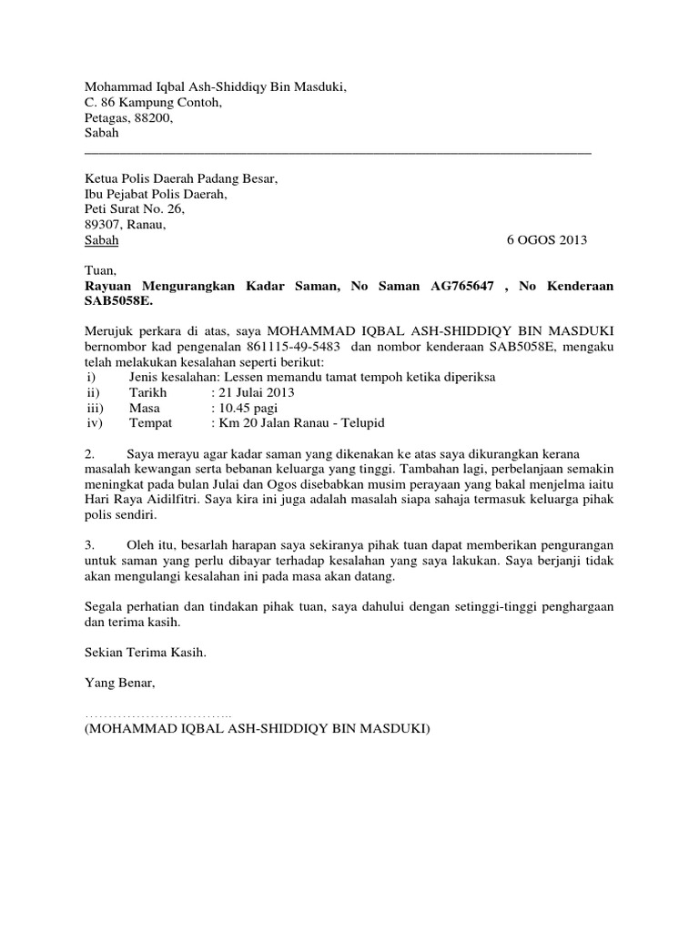 Contoh Surat Rayuan Pengurangan Bayaran Kompaun Perkeso Wallpaper